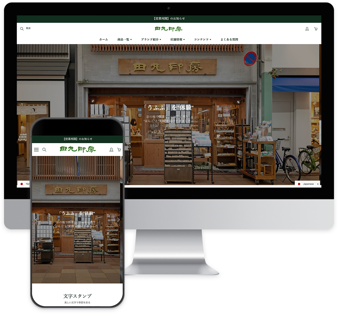 - 京都の寺町・新京極に店舗を持つ老舗はんこ屋さん。 10000近くあるSKUを店舗ではスマレジ、ECはShopifyで運営し、それを当社開発のスマレジ連携Appで在庫連携することによりシームレスな在庫管理を実現しています。