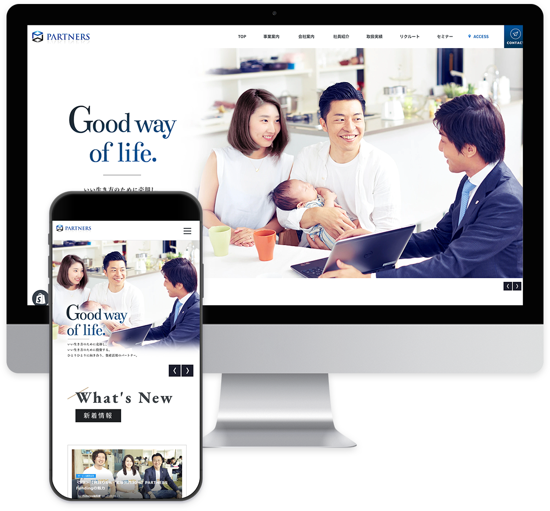 コーポレートサイト制作事例を、使用したテーマ、アプリ、仕様なども合わせてご紹介します。